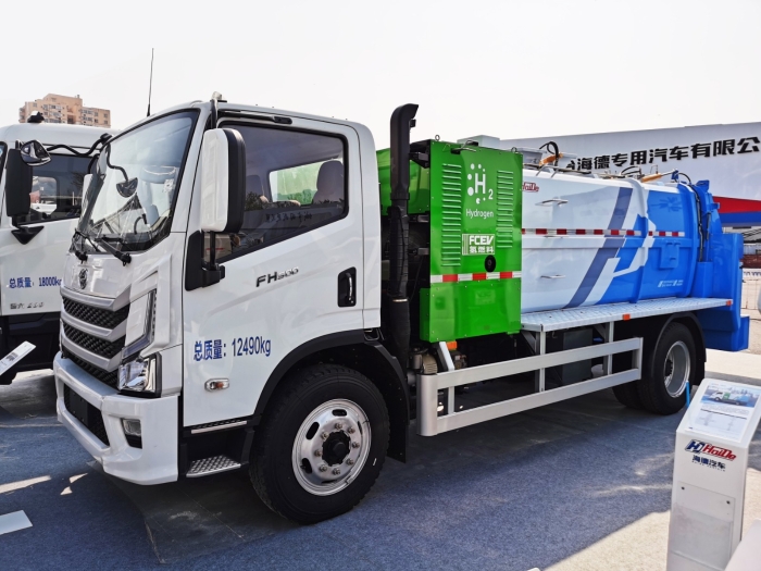 CHD5120TCASQFCEV餐厨垃圾车采用新能源燃料电池载货汽车底盘开发设计,无任何污染物排放,容量大、效率高、无渗漏,自动化程度高,广泛适用于宾馆、食堂剩菜残渣的收集和运输。多年来海德汽车的餐厨垃圾车市场销量无出其右。新品首秀,闪耀亮相,受到各级专家、领导和客户的高度关注。